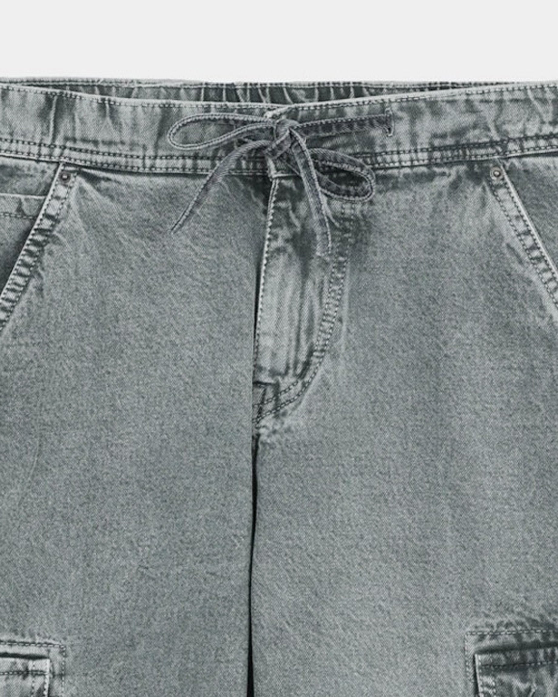 FIT: Relaxed, mid-rise silhouette with six functional pockets and an elastic drawstring that adds edge and structure. Practical yet distinctive—your wardrobe’s understated standout.