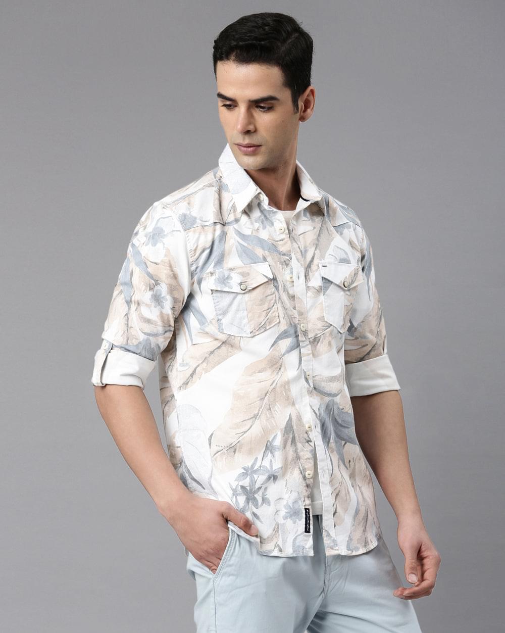Keep it simple—pair your floral or printed shirt with plain trousers or jeans to let the shirt stand out. For a sharper look, tuck it in with a belt.