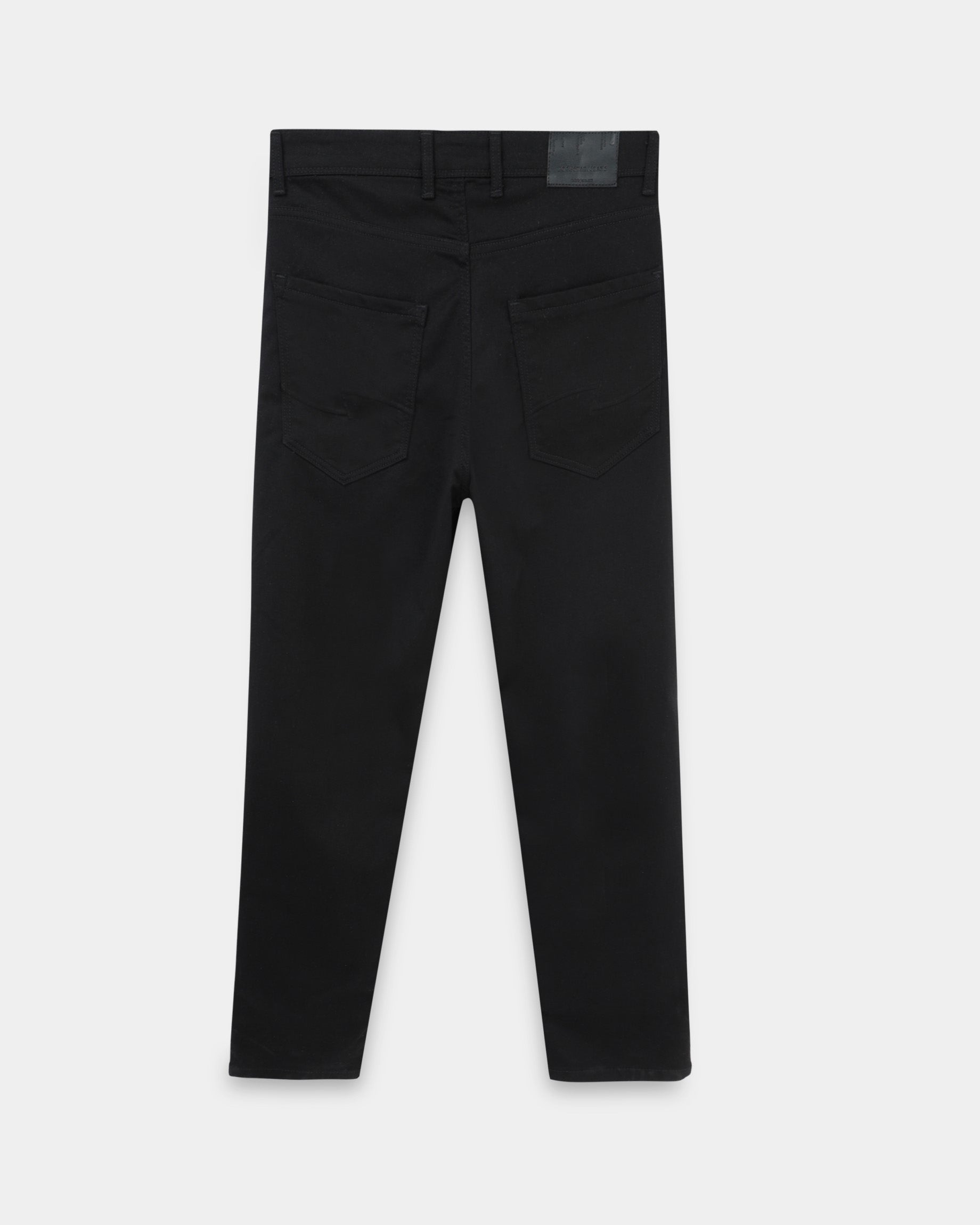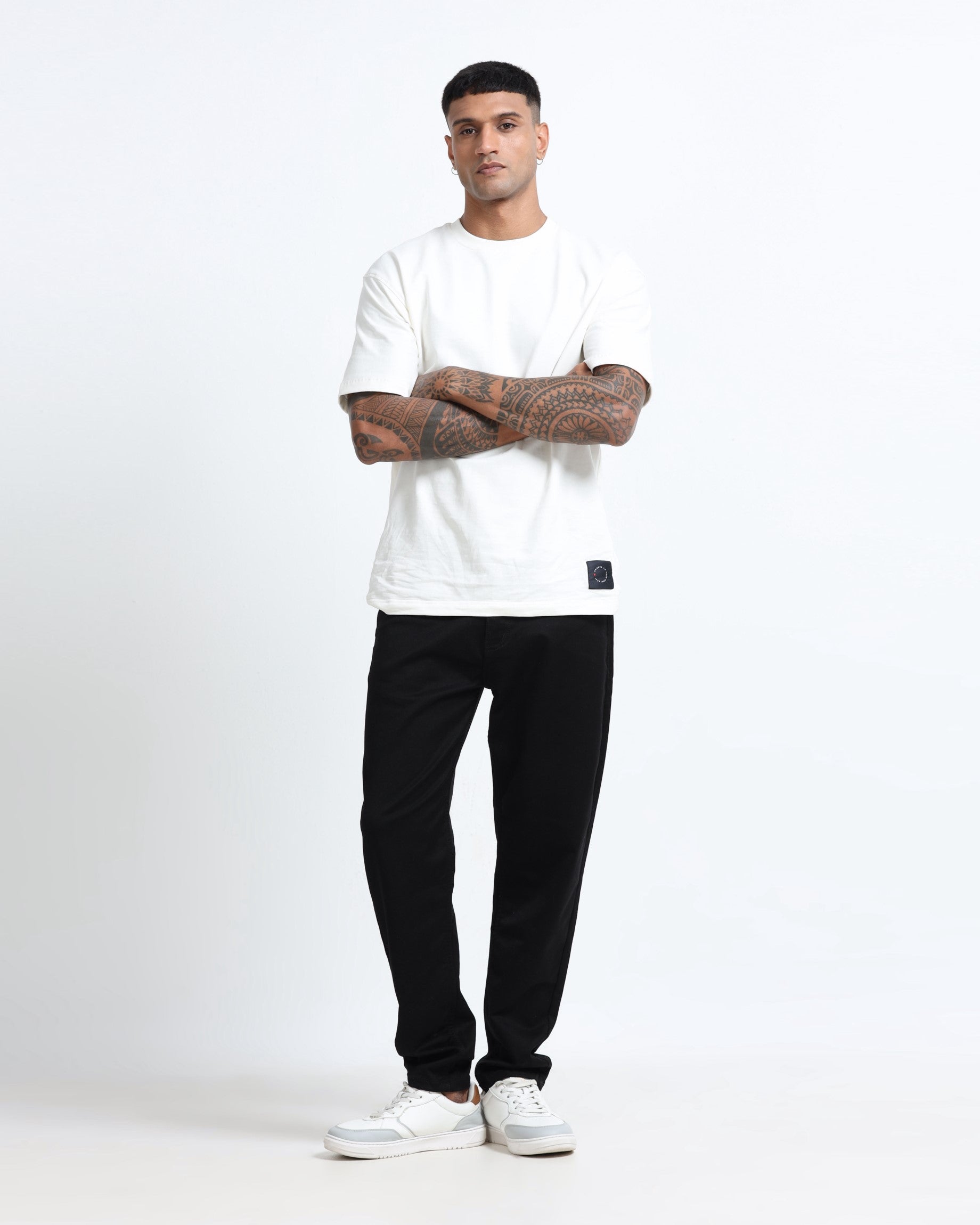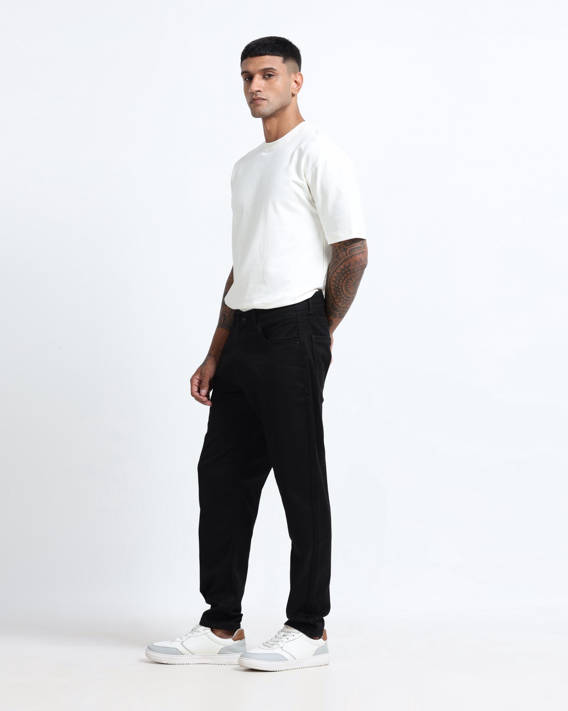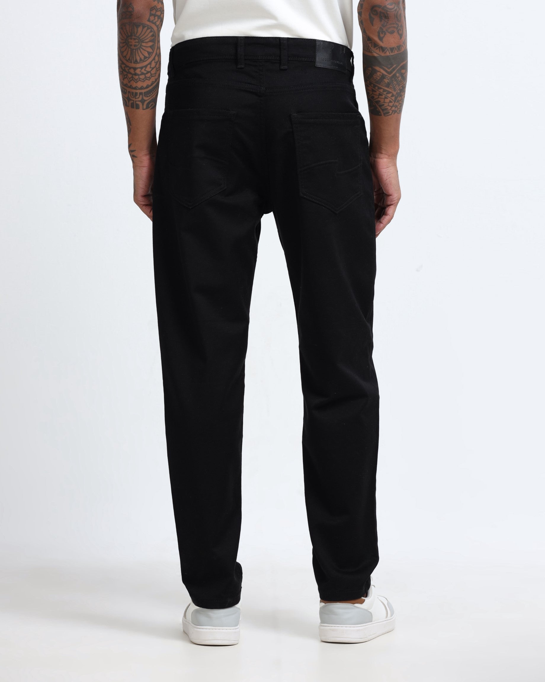 Unwashed denim trousers crafted for structure, comfort, and everyday ease. Made from a durable cotton blend with a smooth, clean finish, these black trousers feature a relaxed fit and turned-up cuffs that give a neat, refined look. Easy to maintain and wearable for casual outings, they offer the perfect balance of comfort and durability.