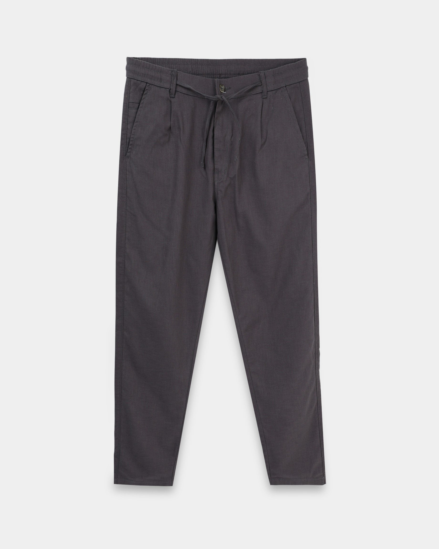 Lightweight, breathable, and effortlessly refined—these beige linen trousers are made for easy days and everyday wear. Designed with a relaxed, natural drape, they feature a single front pleat for subtle structure, paired with an elastic waistband and drawstrings for adjustable comfort and a modern, easygoing look.