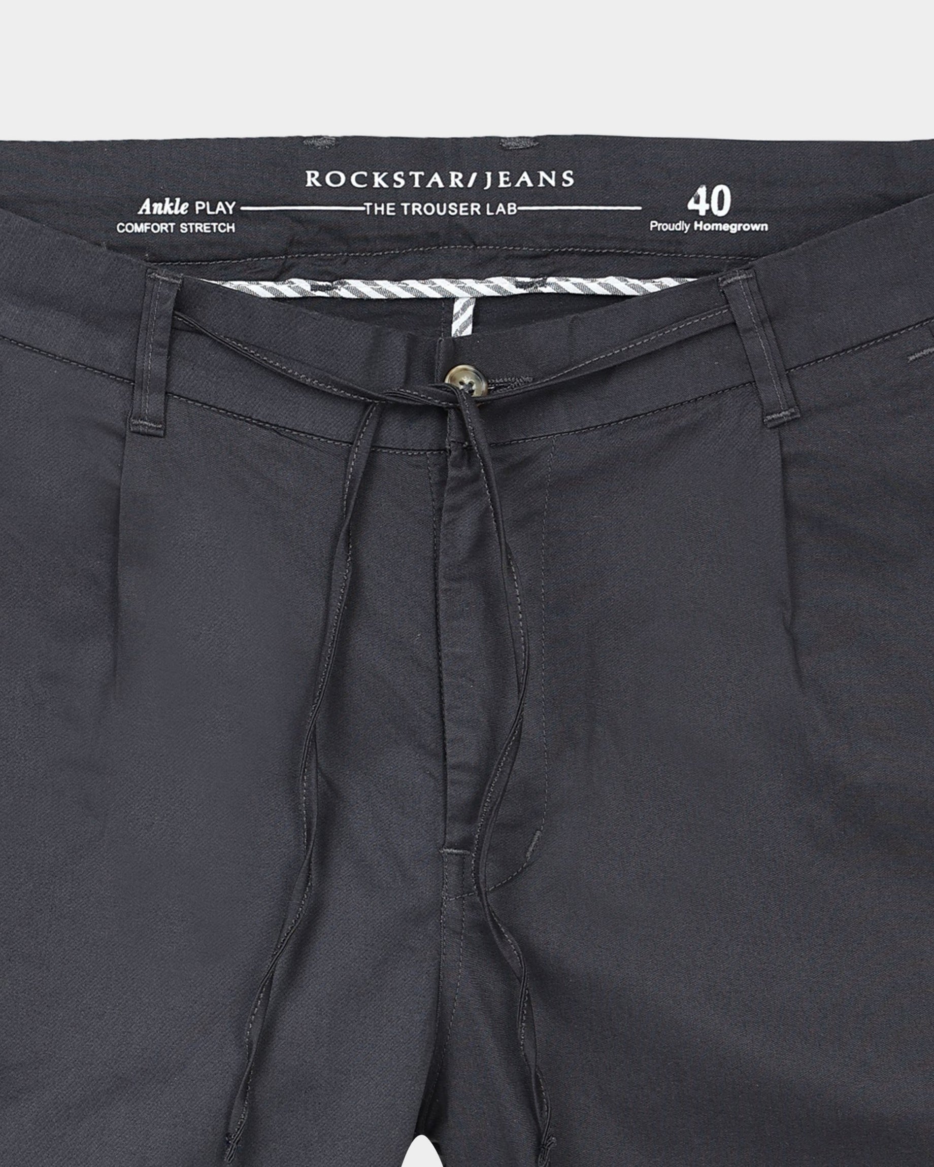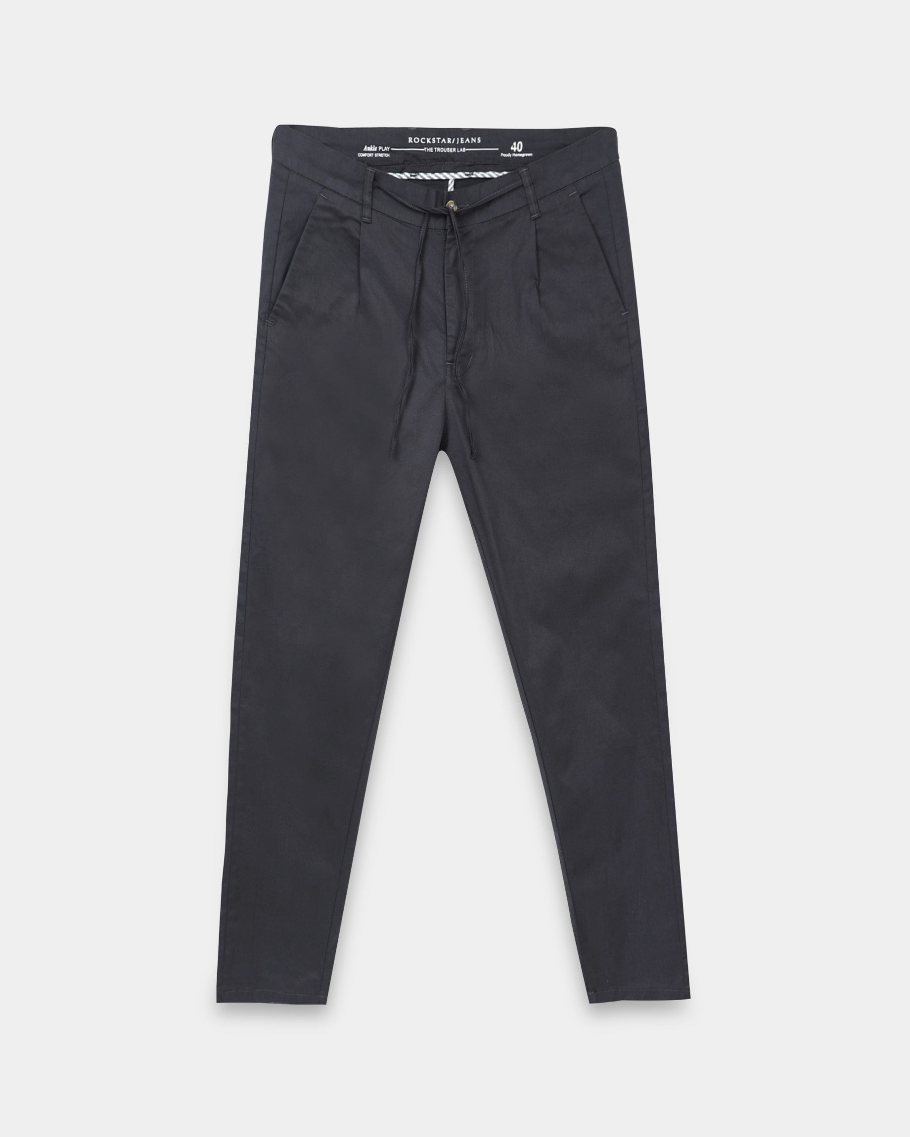 Crafted in sturdy twill with a smooth, polished feel, these grey trousers are built for everyday comfort and versatility. Cut in a regular fit and finished with an adjustable drawstring waist, they offer a clean, easy silhouette that transitions effortlessly from work to weekends. Turning up the cuffs can add a subtle, refined touch to complete the look.