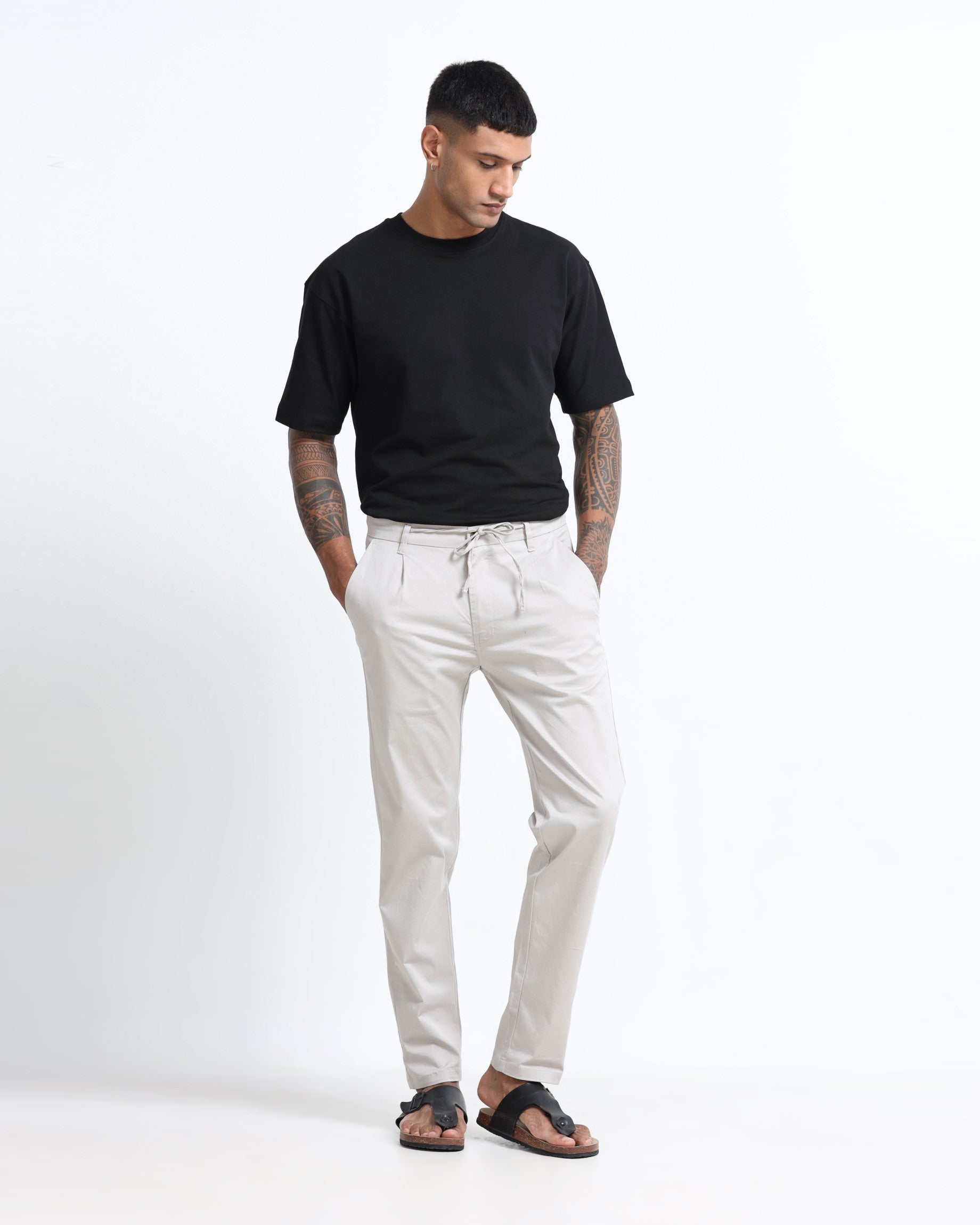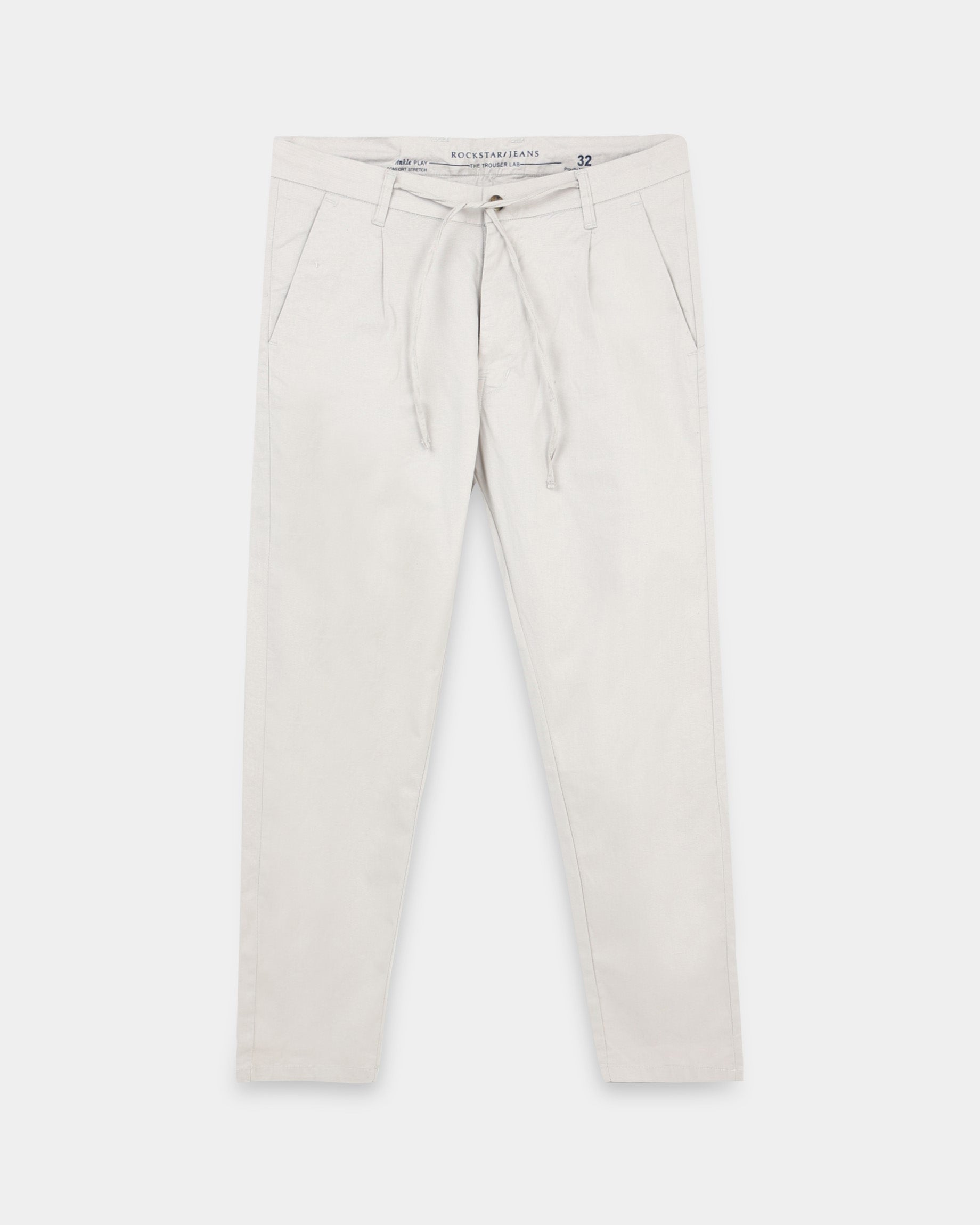 Crafted in sturdy twill with a smooth, polished feel, these grey trousers are built for everyday comfort and versatility. Cut in a regular fit and finished with an adjustable drawstring waist, they offer a clean, easy silhouette that transitions effortlessly from work to weekends. Turning up the cuffs can add a subtle, refined touch to complete the look.