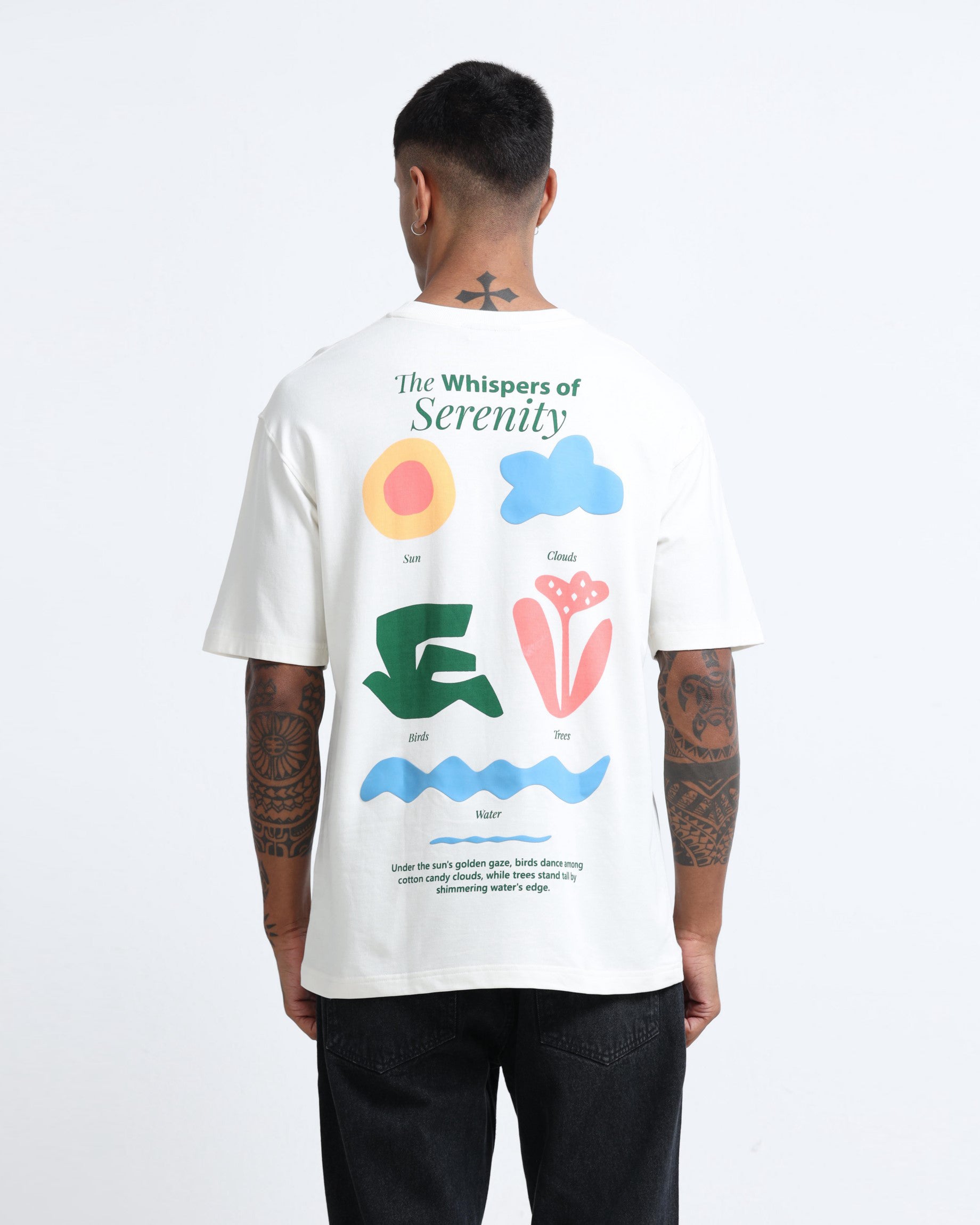 Bask in calm. The SERENITY Tee (100% cotton) captures the gentle symphony of nature—sunlight, clouds, birds, and shimmering waters. Soft, breathable, and effortlessly comfortable, it brings the quiet beauty of the outdoors into your everyday style, inviting you to pause, reflect, and carry a sense of calm wherever you go.
